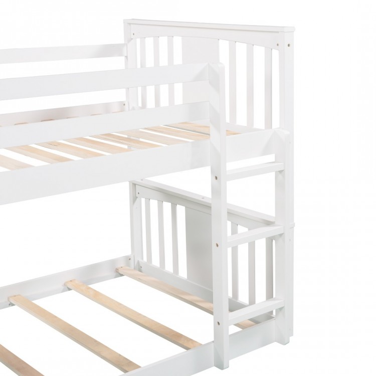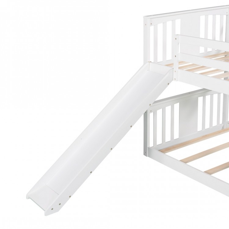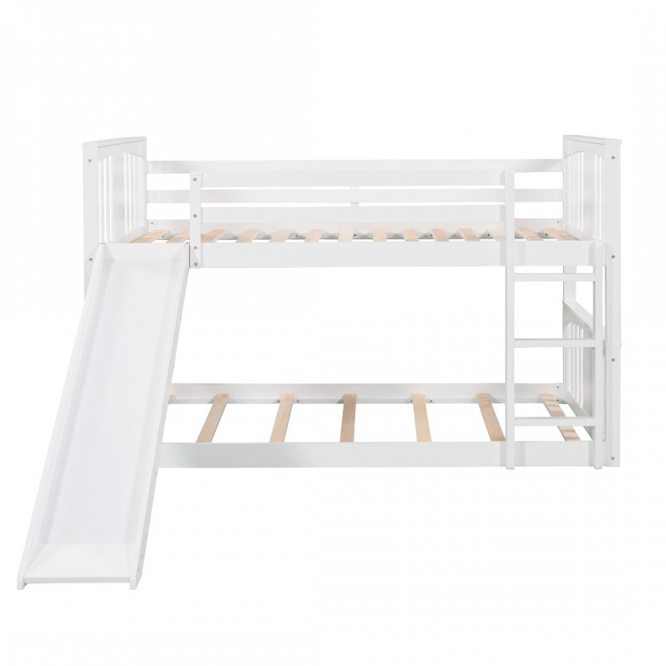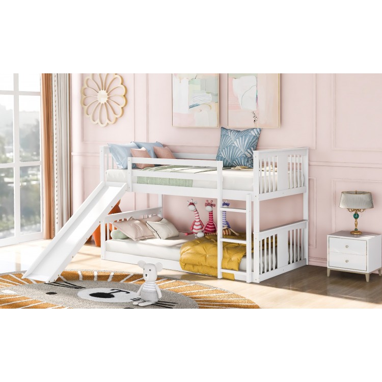 yoptote Twin Size, Low Frames with Slide,Safety Rails,2 Single for Youth/Adult,Sturdy,Noiseless,Solid Wood,White Bunk Bed